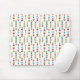 This mouse pad has a mid-century modern design of arrows made from black lines and different shapes in retro colors of red, blue, green, orange, gold, and grey on a field of white. Want the same design with different colors? Message me.