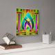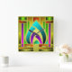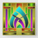 Colorful and vibrant Art Deco design in gold, green, orange, blue, red and purple.
