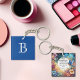 Elevate your everyday with our customizable Christian Bible verse keychain. Inspired by Art Nouveau elegance, this intricate design features vibrant floral motifs and a serene blue bird, encapsulating the essence of Romans 5:8. Crafted with attention to detail, each keychain serves as a tangible reminder of God's unconditional love. On the reverse, personalize with your monogram and choose from a range of background colors to match your style. Whether for yourself or a cherished gift, let this keychain be a beacon of faith and beauty in your daily journey.