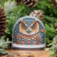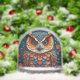 Vivid and intricately designed owl sculpture featuring vibrant colors and detailed floral elements, creating an artistic and whimsical nature-themed decorative piece.
