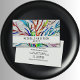 This Artist's business card is decorated with a colorful mosaic and modern typography.