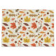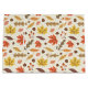 This design showcases a lively autumn-themed pattern featuring a variety of colorful leaves and acorns. The background is a light cream color with subtle speckles, adding texture and depth to the design. The pattern includes maple leaves in vibrant shades of red, yellow, and orange, along with other leaves in warm browns, muted greens, and soft pinks. Scattered among the leaves are small acorns and clusters of berries, enhancing the fall ambiance. The arrangement is both whimsical and balanced, capturing the cozy and festive spirit of the autumn season.
