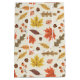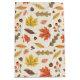 This design showcases a lively autumn-themed pattern featuring a variety of colorful leaves and acorns. The background is a light cream color with subtle speckles, adding texture and depth to the design. The pattern includes maple leaves in vibrant shades of red, yellow, and orange, along with other leaves in warm browns, muted greens, and soft pinks. Scattered among the leaves are small acorns and clusters of berries, enhancing the fall ambiance. The arrangement is both whimsical and balanced, capturing the cozy and festive spirit of the autumn season.
