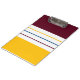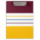 This modern clipboard features a colorful autumnal pattern in mulberry purple, amber yellow, and white stripes.
