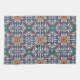 Colorful watercolor azulejos ceramic tiles pattern on a white background.