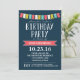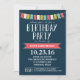 Colorful Banners Dark Navy Blue Birthday Party Invitation