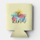 This cute can cooler features a whimsical heart and a colorful paint splash in shades of blue, yellow, pink, and green, along with trendy text that reads: be kind.