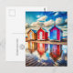 Send a little sunshine with this whimsical coastal postcard featuring three colorful beach huts reflected in rippling tide pools. The painterly watercolor style and dreamy sky create a cheerful, lighthearted feel—perfect for vacation greetings, pen pal letters, summer notes, or simply brightening someone’s day. A charming way to share coastal joy and warm breezy vibes, whether you’re traveling or sending love from home.