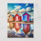 Colorful Beach Huts Ocean Reflection Coastal Postcard