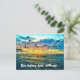 This is a beautiful and romantic postcard featuring a gorgeous colorful sunset on the beach full of birds flying photo print and the saying 'You belong here, with me...' written in white letters, over the ocean.