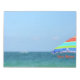 Picture yourself under this bright colorful beach umbrella lookin at a tropical sea with an approaching boat. Customize with your name there and your notes will say it all!