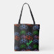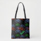 Here's a fun tote bag that any bicyclist will love! Brightly colored red, blue, purple and green bicycles are scattered across a black background. The customized text in bright green says BIKE, but you may change it or personalize it, if you wish. Colorful! The back of the bag has the same bright bicycle pattern and text.