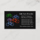 Bright and colorful bicycles in red, green, blue, and purple decorate the left side of this business card. The right side holds your easily customized business text in white. The images and text are placed on a dramatic black background. The back of the card is also black, with an extra information field if you need it. Perfect for any business that is centered around bicycles, or just for fun!