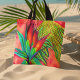 This tote bag showcases a vibrant abstract image of a Bird of Paradise flower surrounded by tropical foliage. This colorful flower and tropical palm leaf tote features the beauty of the Hawaiian island paradise where these beautiful flowers are found.