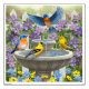 Colorful Birds and Bird Bath Flower Garden Wall Decal
