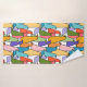 This towel set has a light turquoise washcloth, a darker turquoise hand towel and a bath towel with a mid-century modern design of overlapping birds in flower power colors. Want different colors? Message me.