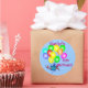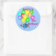 A bright, fun balloon bouquet flies through the air tied together with a blue shining star and red ribbon. Personalize these colorful stickers with any name and birthday age. Shown is "Emily's 6th Birthday!" on a light blue background. Easily change all the text and even change the color as well as the blue background. Just click on customize and then click on "colors" to change it.