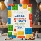 Celebrate in style with a playful and vibrant block-themed design featuring bold colors and fun shapes, perfect for kids who love creativity and adventure.