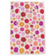 Colorful flower pattern in yellow, orange, pinks, lilac and reds on a cream color background.