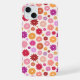 Colorful flower pattern in yellow, orange, pinks, lilac and reds on a cream color background.