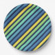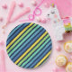 Colorful Blue Green Yellow Stripes Pattern Paper Plates
