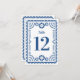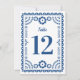 This beautiful papel picado inspired wedding table number card features an ornate frame in colorful blue on a white background, and festive typography. This elegant yet modern design is a fabulous choice for a Latinx wedding, rehearsal dinner, engagement party, or bridal shower. See coordinating items in the collection...