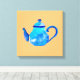 A cute watercolor llustration of a colorful blue teapot in cute illustration style. Whimsical and cute for tea lovers.