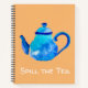 A cute watercolor llustration of a colorful blue teapot in cute illustration style. Whimsical and cute for tea lovers.