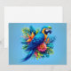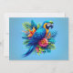 Colorful, blue tropical macaw holiday card