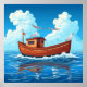 Colorful Boat Floating on Ocean Waves Poster