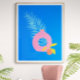 Colorful Boho Botanical Fruit Art in Blue Poster