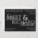 This Design Features an almost Deep Black colored Background and a contrasting white text. The text combination is a mix of bold and calligraphy. Perhaps the best part about this Invitation is that is comes in multiple colors, so you can mix and match different invitation colors with your other wedding stationary, but everything is designed to be cohesive, no matter what color you pick. We wanted something fun and going "full color wheel" seemed to be the ticket. We home you enjoy this invitation and the coordinating items available in our store.