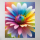 A vibrant flower displays an extraordinary array of colors, with petals transitioning seamlessly from one hue to another. The background complements the bloom with a soft blur of matching rainbow shades.