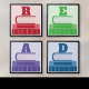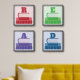 A wall art tile with colorful books and the letters of the word "READ" . The first one is red , the second is green , the third is purple and the last one is blue . Perfect for a nursery room or for the reading corner of a classroom . You can change the frame color if you wish .