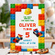 Bring creativity to life with this fun building block–themed design featuring bright interlocking bricks, toy cars, and playful colors. Perfect for kids who love to build, imagine, and celebrate in style.