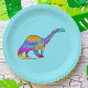 Colorful Brontosaurus Psychedelic Dinosaur Art Paper Plates
