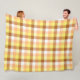 This fleece blanket features a colorful plaid pattern in fall colors: yellow, orange and brown. Great for fall season.