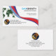 Your prestigious name are in two portions to take advantage of dual colors. Below this are your job title and slogan option to advertise your services. Near the base are a gold logo option (of a golden eagle and a dark yellow wheel sun) alongside its business name and contact details.