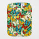 A vibrant pattern showcases numerous butterflies in various colors, amidst flowers and vines, creating a cheerful and lively design. Your sweet baby will love this!