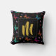 Colorful Butterflies Pattern on Black Monogram Throw Pillow