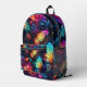 Lightweight and durable, our custom all-over-print Backpack is just what you need. The spacious interior is ideal for travel, school, gym, or any mobile storage need. Bring your stuff with you in style! Features Adjustable padded shoulder straps, two chambers on the inside for laptop storage, mesh side pockets and an identification label.