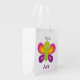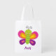 Personalized Reusable Bag featuring a colorful butterfly with a beautiful purple floral background. Cute and fun design for special for girls. Custom monogrammed special for groceries and parties.
