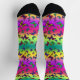 This fun Halloween socks are bright and colorful. The small print is crisp and shows the fun details. The softness of the socks feels nice on my feet and ankles. .