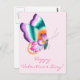 NewparkLane - Fun, colorful boho chic Valentine's Day postcard, featuring an elegant colorful butterfly. With a blush pink background and 'Happy Valentine's Day' in fun hot pink script typography. Fun boho chic card...
