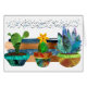 An enchanting trio of cactus and succulent plants sit in colorful pots before a backdrop of copper and blue watercolor brush strokes. The customizable greeting inside the card says, "You brighten my days."