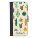 Colorful Cactus Floral Personalized Name iPhone Wallet Case