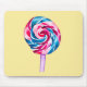 Funky colorful giant lollipop watercolor original art illustration of candy on a stick. Pink, purple and blue.