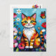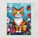 Colorful Cat, Flowers and Butterfly Postcard