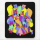 Buy this mousepad with a vivid pattern of overlapping cats in bright jazzy colors. While away idle moments by puzzling out how many cats there are and which outline belongs to which cat. Acknowledgment. I created the line drawings of cats used in this image by tracing from photographs by Sara Bean. I, Valerie Joanne Higgins, thank Sara Bean for her permission for me to make commercial use of this image which is strongly derived from her work.