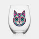 Colorful Cat Sugar Skull Stemless Wine Glass